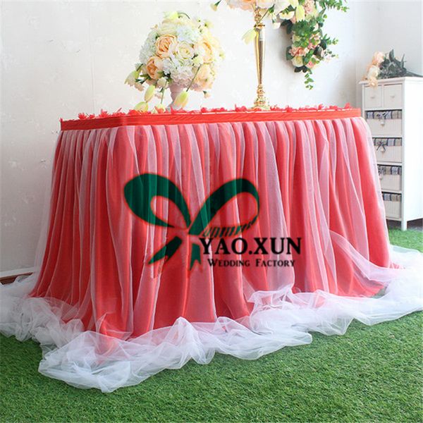 Zehui Romantic Tutu Fluffy Table Skirt Tulle Tableware Tablecloth
