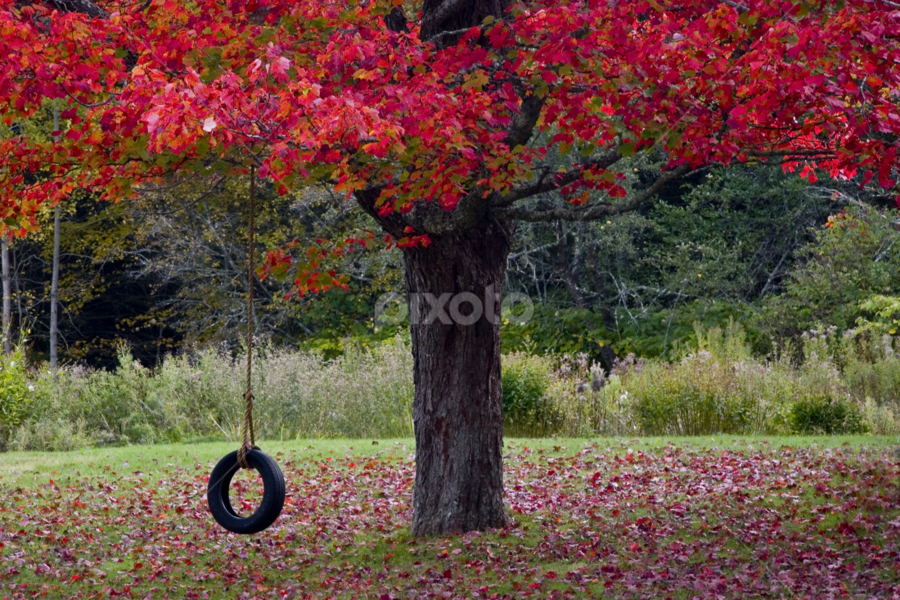 Red Tree With Tire Swing Trees Bushes Nature Up Close Pixoto