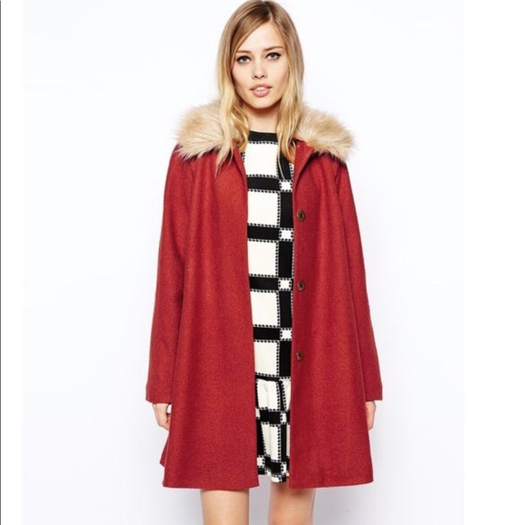 Asos Jackets Coats Rust Trapeze Swing Coat With Faux Fur