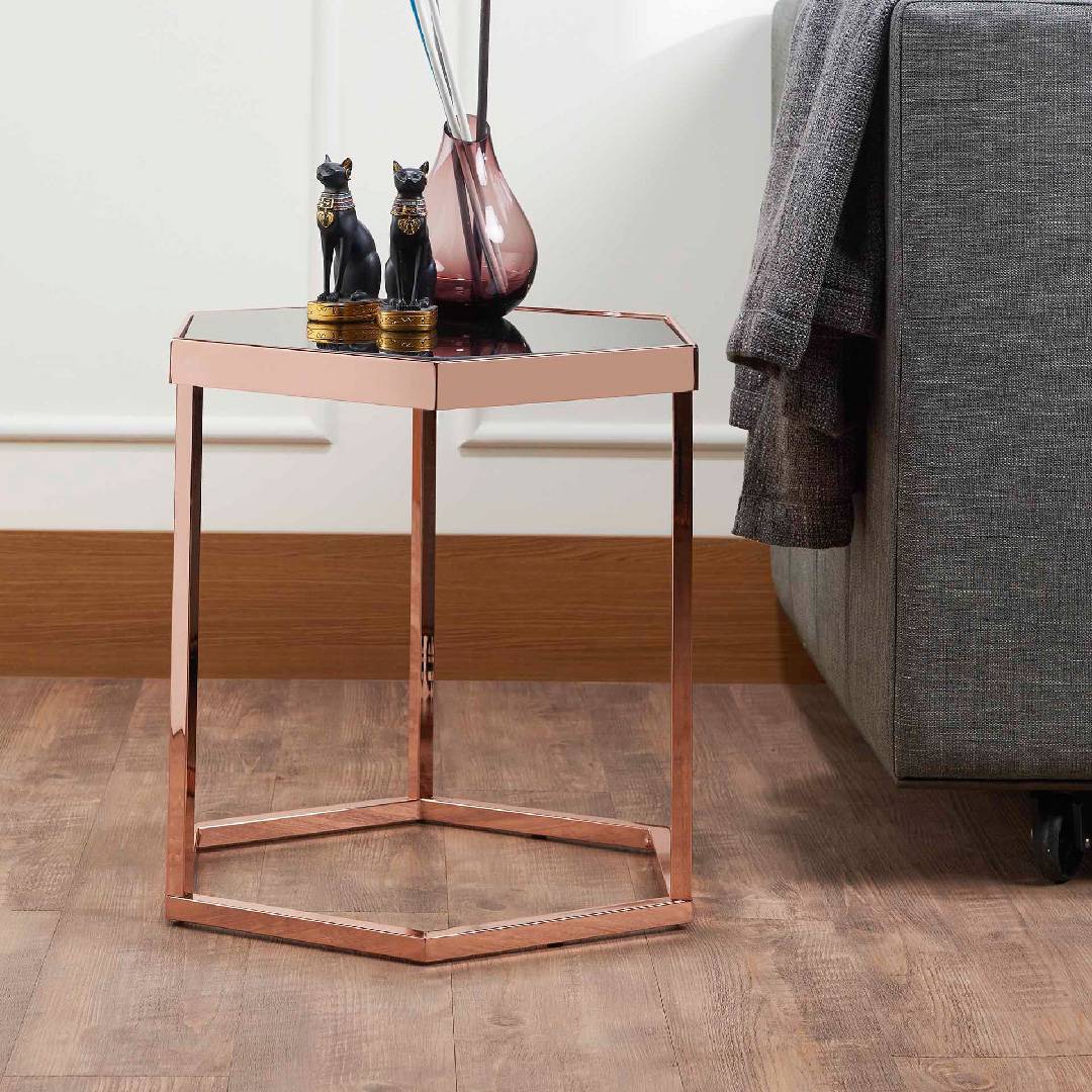 Hexagonal Black Glass Rose Gold Exquisite Side Table Supply One
